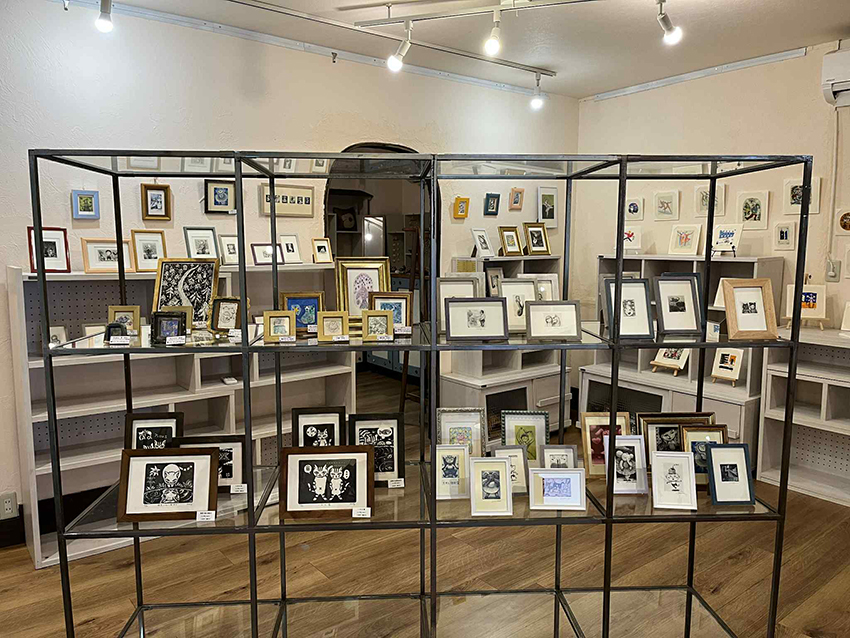 ギャラリールームで個展もされている作家さんたちのミニ版画が、所狭しと100点以上が展示されている。
